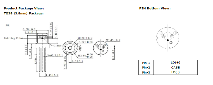 635nm~638nm 3.8mm Package|130mW| Red Laser Diode