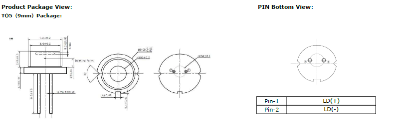 635nm~638nm 2W Laser Diode 9mm TO5 Package | High power Red Laser Diode