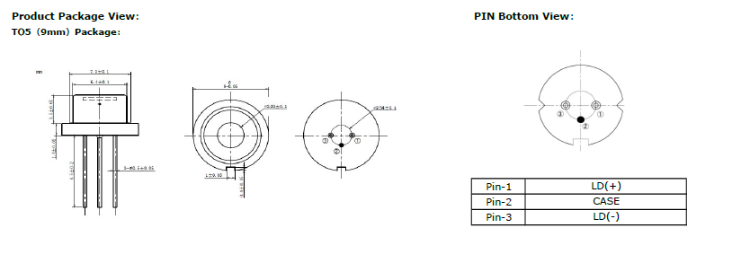 808nm~810nm 3W Laser Diodes | TO5 9mm package| Square Beam Optional
